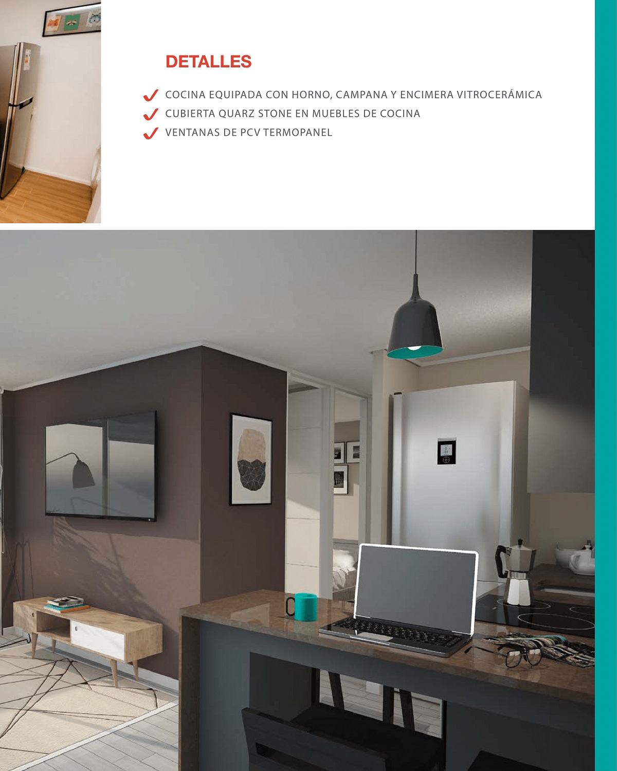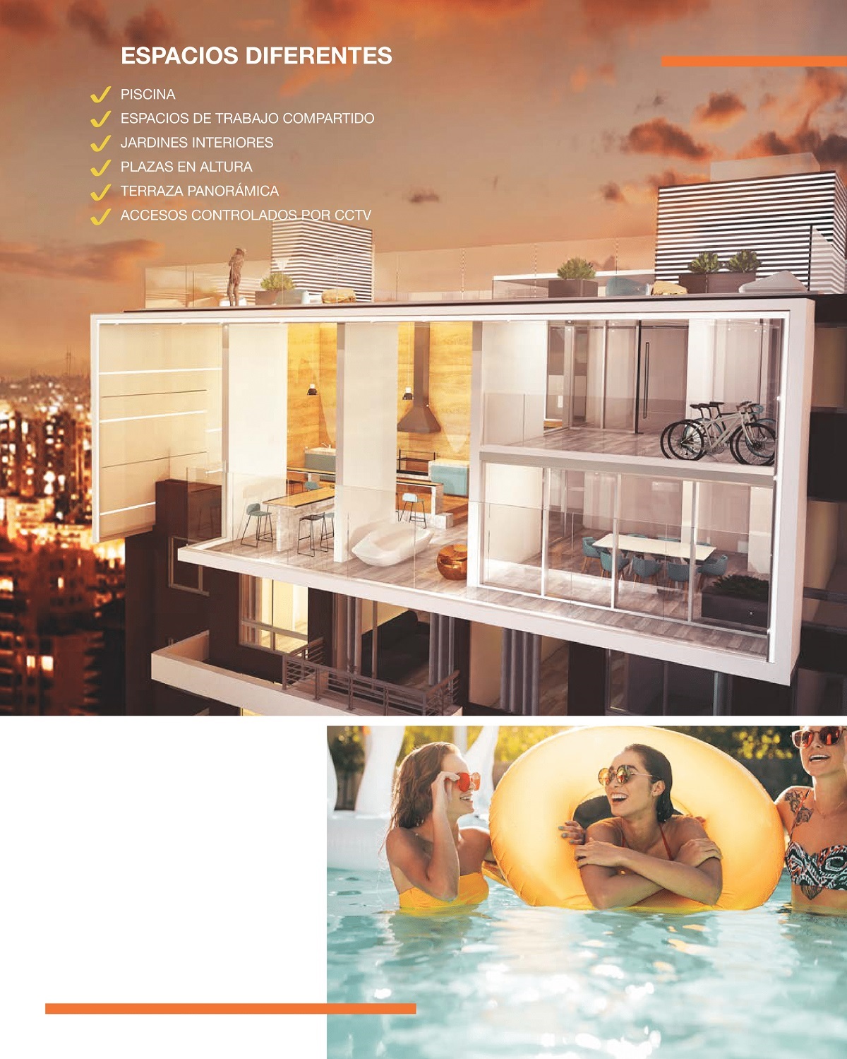 - Espacios Comunes: Terraza con vista panorámica - Piscina - Espacio Cowork - Jardines Interiores - Plazas en altura.
